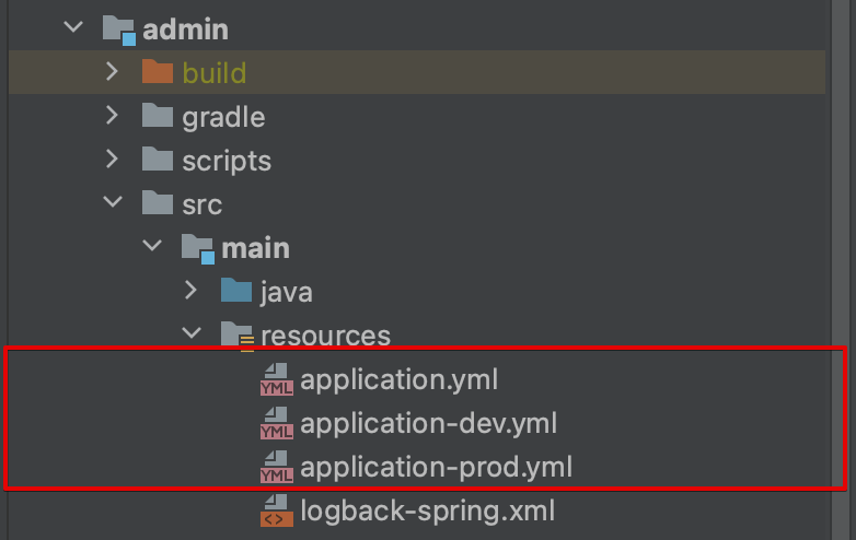 환경 별로 설정 파일을 만들려면 application-[이름].yml 형식으로 파일을 생성합니다. 상기 이미지를 보면 application.yml에서는 기본적으로 어떤 프로파일을 사용할 것인지 설정합니다. application-dev.yml은 개발 환경에서 사용할 설정 파일입니다. application-prod.yml는 운영 환경에서 사용할 설정 파일입니다.